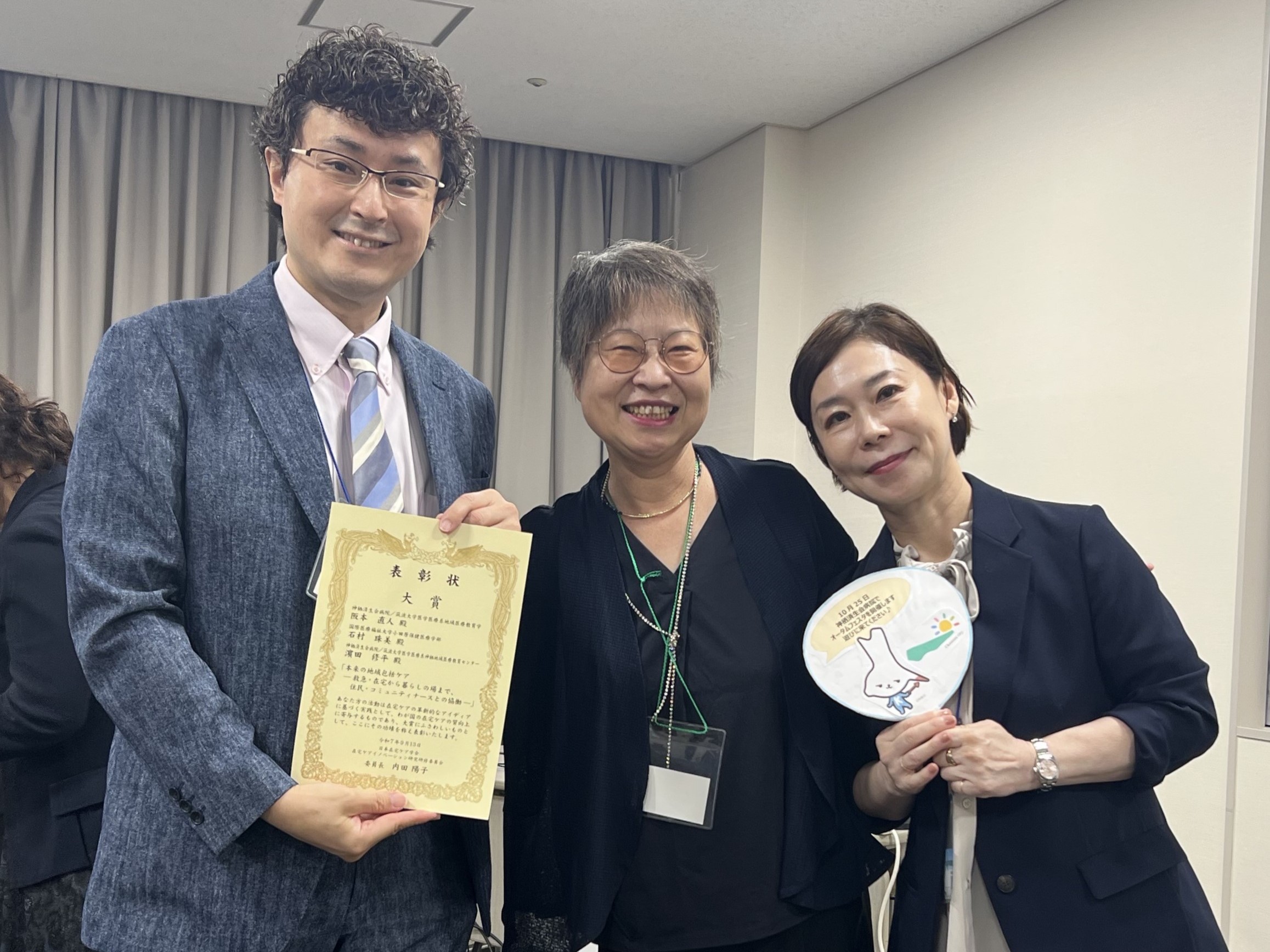 日本在宅ケア学会第30回学術集会(2025年9月13日)にて、大賞候補の4演題が発表・質疑応答を受け、委員会メンバーによる審査が行われました。その結果、僅差で大賞が決定されました。全国から16演題が集まり、一次審査には4題通過、当日はとても独創的でいきいきと力強い発表をいただきました。すべての演題は計画的に実績をあげられ、在宅ケアのイノベーションが期待できる演題でした。